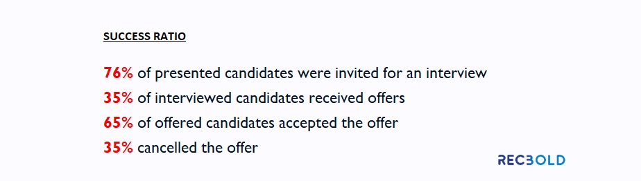 - Wskaźnik 50% kandydatów z poziomu 1st interview otrzymało ofertę